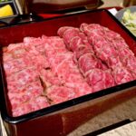 五香刃物の包丁で、A5ランク和牛の繊維に沿って一枚ずつ手切りする。