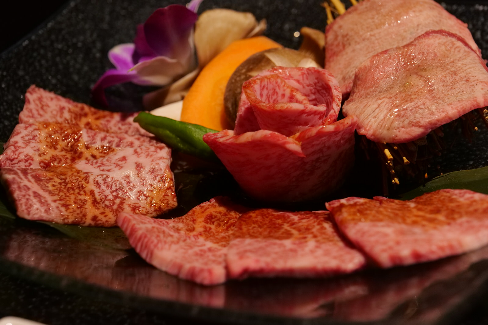 上タン、稀少カット 2 種、炙りユッケ